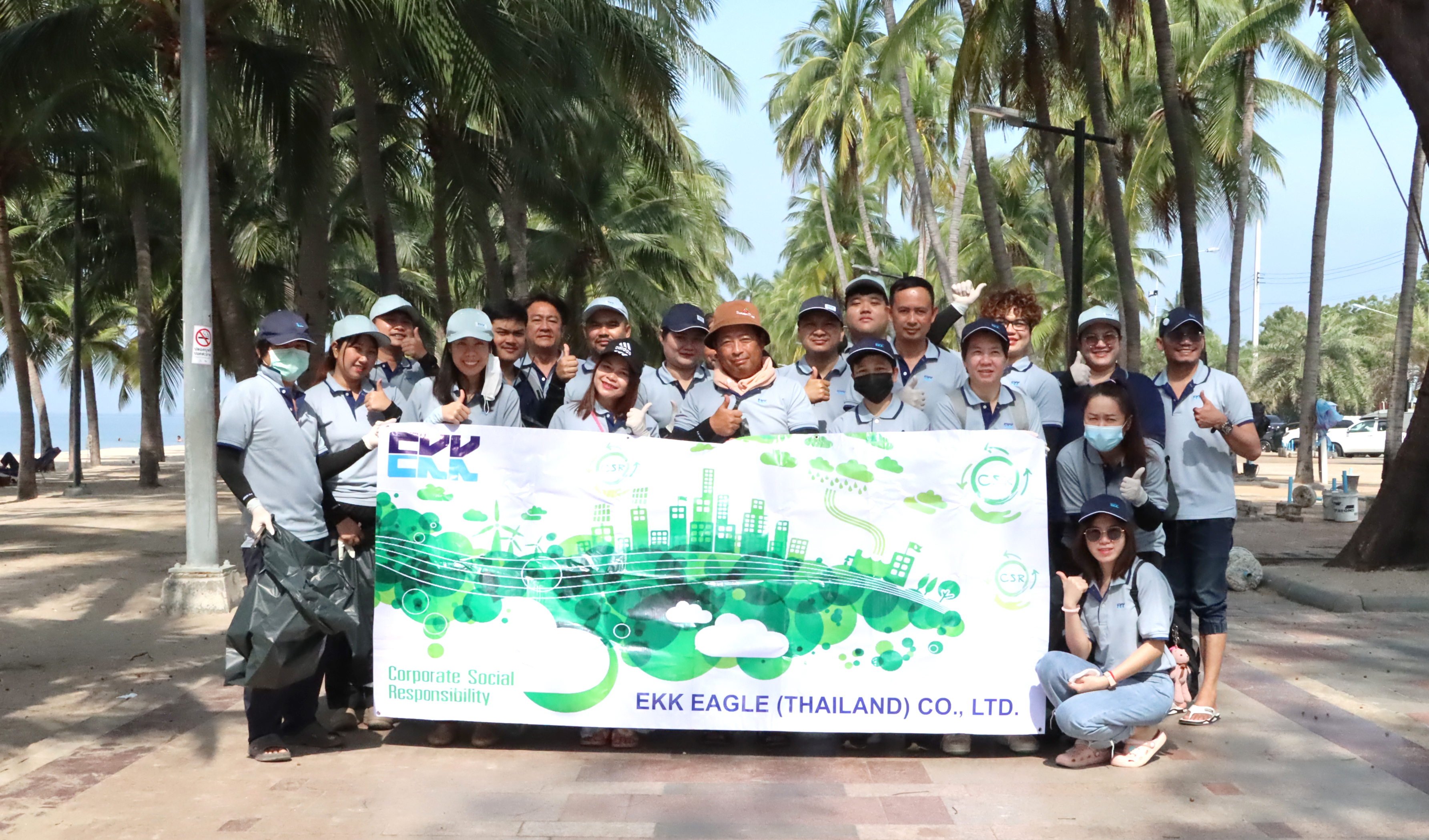 EKK Eagle (Thailand) Co., Ltd. has been conducting social welfare activities by collecting garbage at Bangsaen Beach, which is a tourist area, which has been continuously carried out.