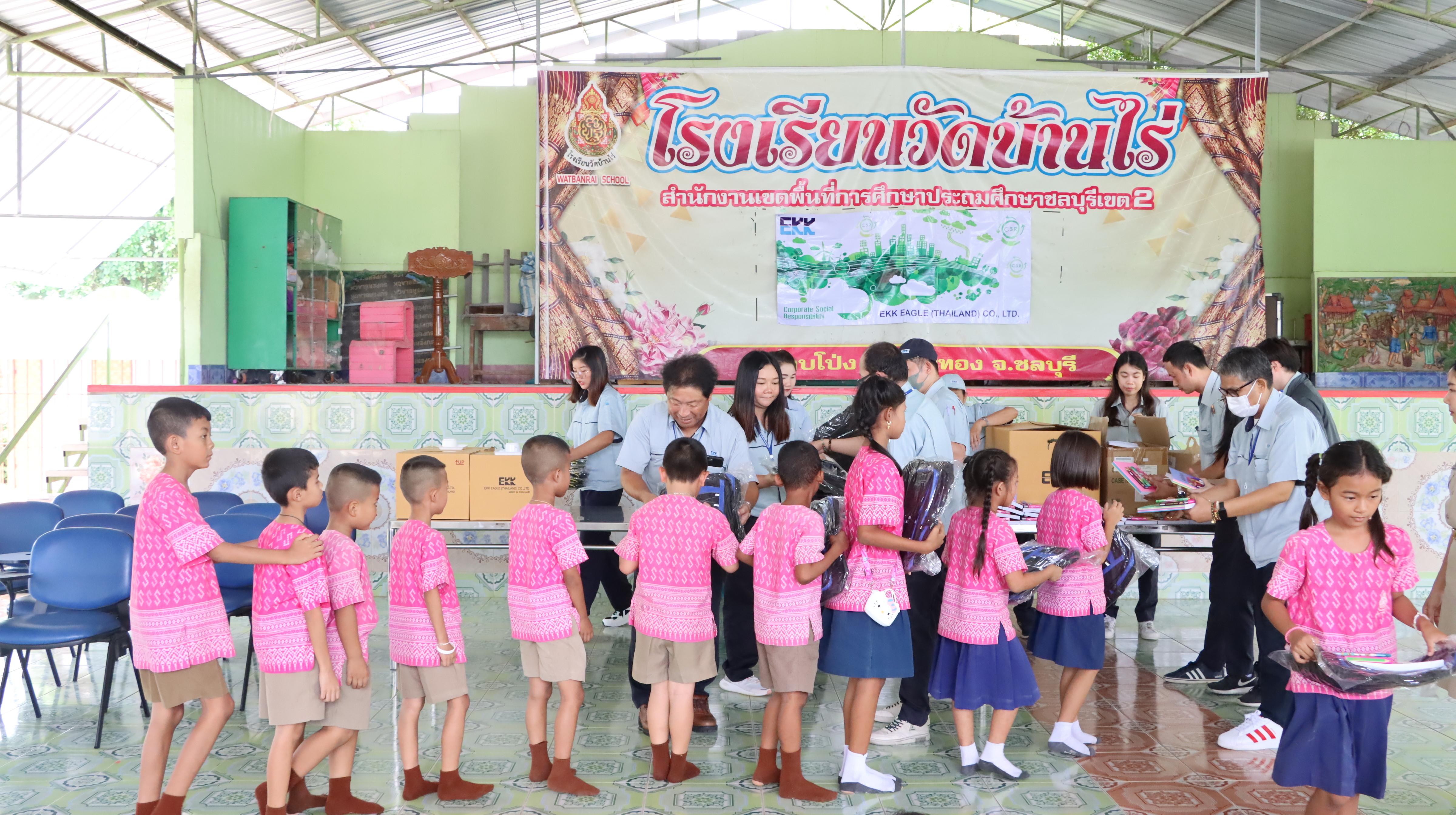 EKK Eagle (Thailand) Co., Ltd. is located in Thailand’s Chonburi province, and as part of its social contribution activities in the region, it supports the Ban Rai School and Lorenzo Home Orphanage, also located in Chonburi. The Ban Rai School provides kindergarten through elementary school education and has a total of 108 students. Its students come from needy families and are able to attend thanks to aid from the government. EKK Eagle (Thailand) provides assistance with things such as school uniforms and educational materials. Additionally, EKK Eagle (Thailand) has donated play equipment to the Lorenzo Home Orphanage, which takes care of approximately 30 children.